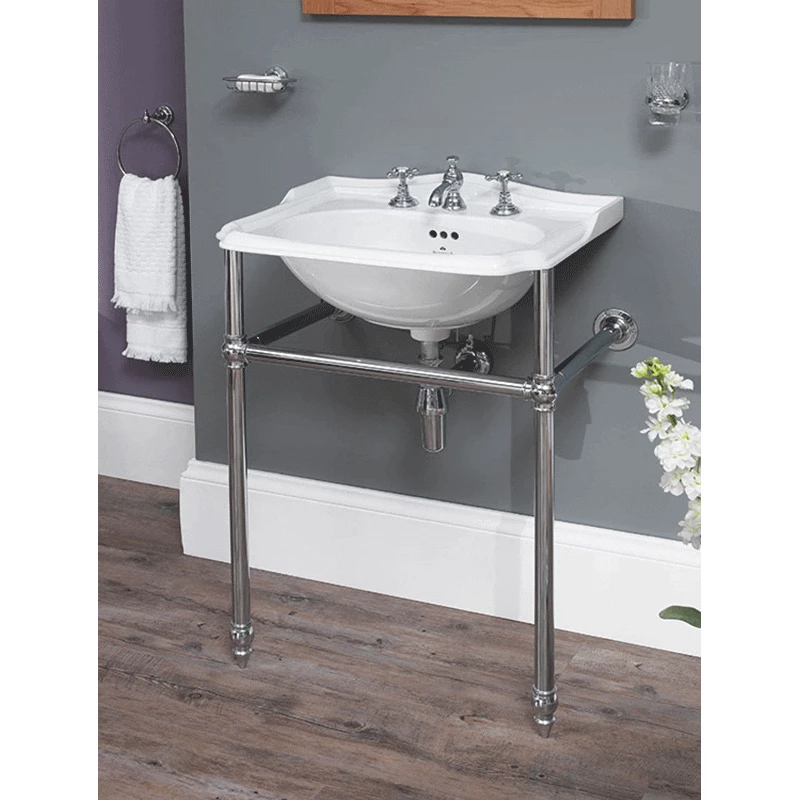The Balasani Basin With Chrome Stand is a timeless piece, being a suitable addition to any vintage bathroom. The simplistic design adds a touch of elegance to traditional bathroom suites whilst creating a character. Furthermore, the stand is available in 3 finishes ensuring it can be adapted to your taste to suit any bathroom décor. Overall, the chrome legs and white china basin will beautifully tie together any Edwardian bathroom suite.