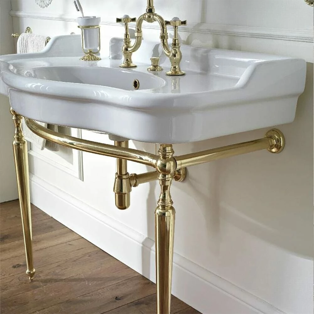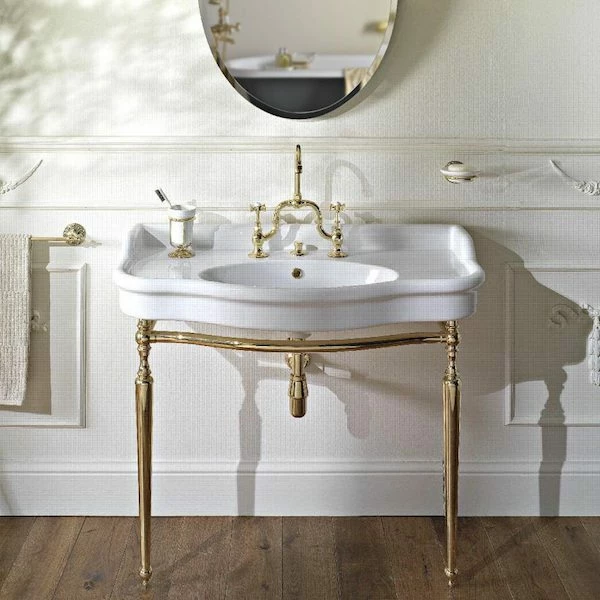 The Palladio 100cm Console Basin on Metal Wash Stand will add a traditional feel to any old fashioned bathroom. The elegant mental washstand is available in six finishes, which all beautifully compliment the white basin. Therefore, this piece is adaptable to suit any decor. Furthermore, the metal structures are made with soft and delicate shapes to follow the sinuous lines of Palladio. Altogether, the Console Basin on Metal Wash Stand will create a statement in any traditional bathroom.
