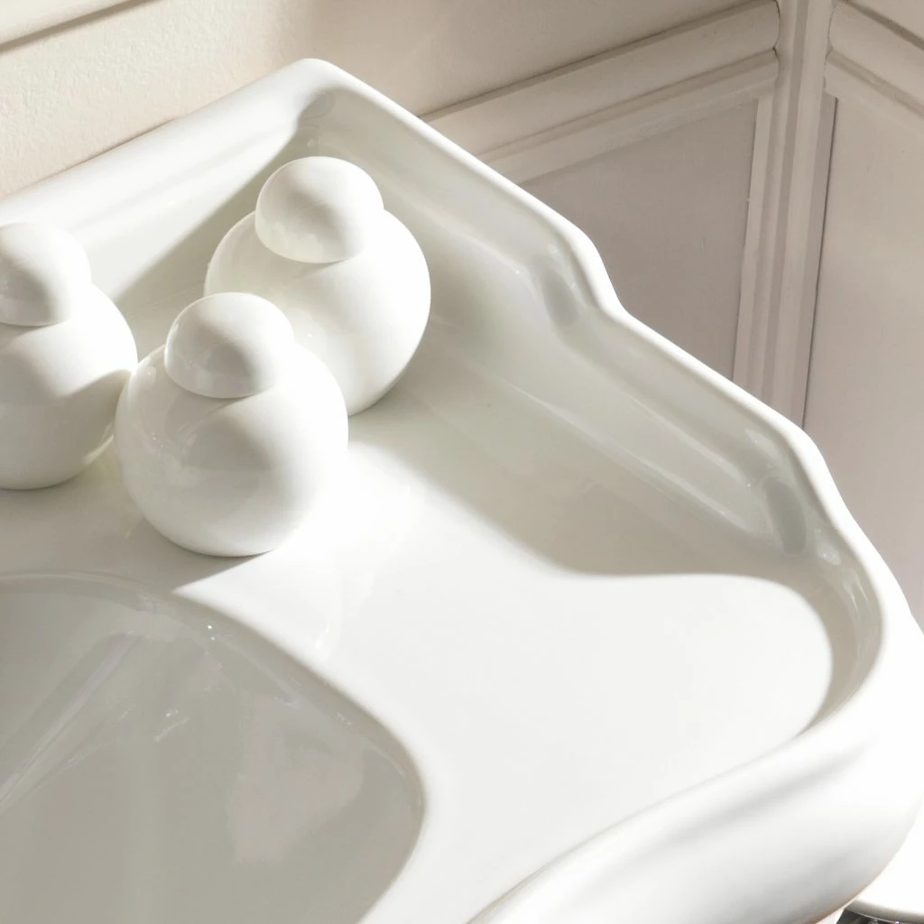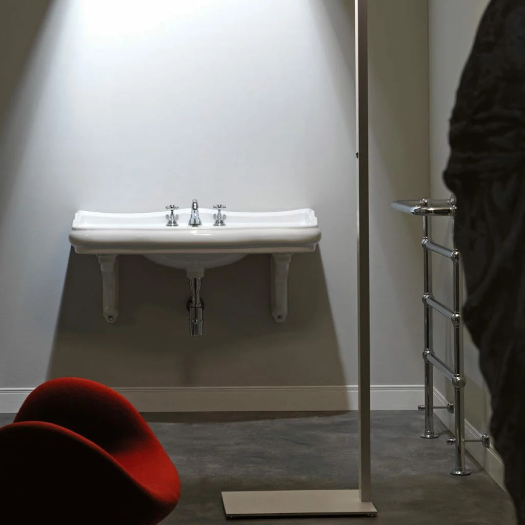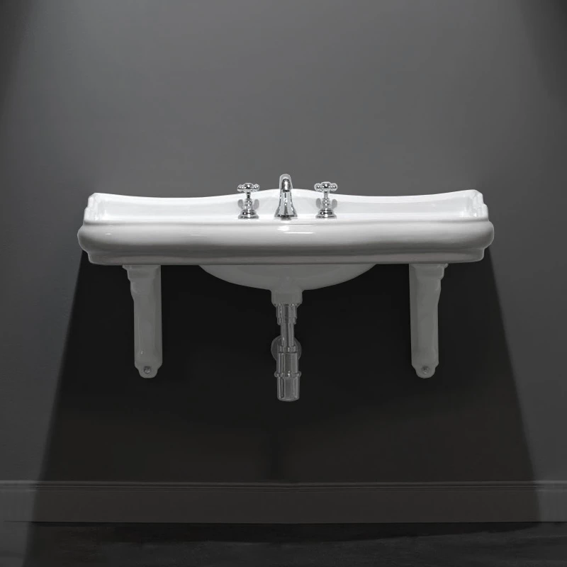 The Retro 100cm console basin on ceramic brackets offers elegance with clean, rounded edges and premium quality vitreous china. This immaculate piece creates a focal point when mixed with modern bathrooms or can match the Retro collection and create a truly traditional bathroom interior.