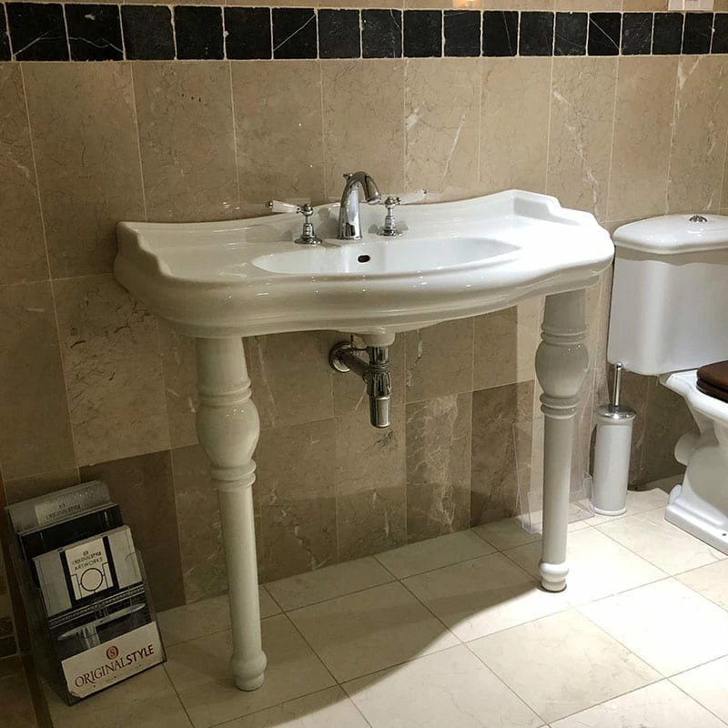 The Retro 100cm Console Basin on Ceramic Legs is perfect for creating elegance within classic bathroom interiors. This stunning piece boasts premium quality vitreous china, built to last a lifetime. Made by expert craftsmanship in Italy. This extra large basin and art deco ceramic legs is supplied with a 10 year guarantee.