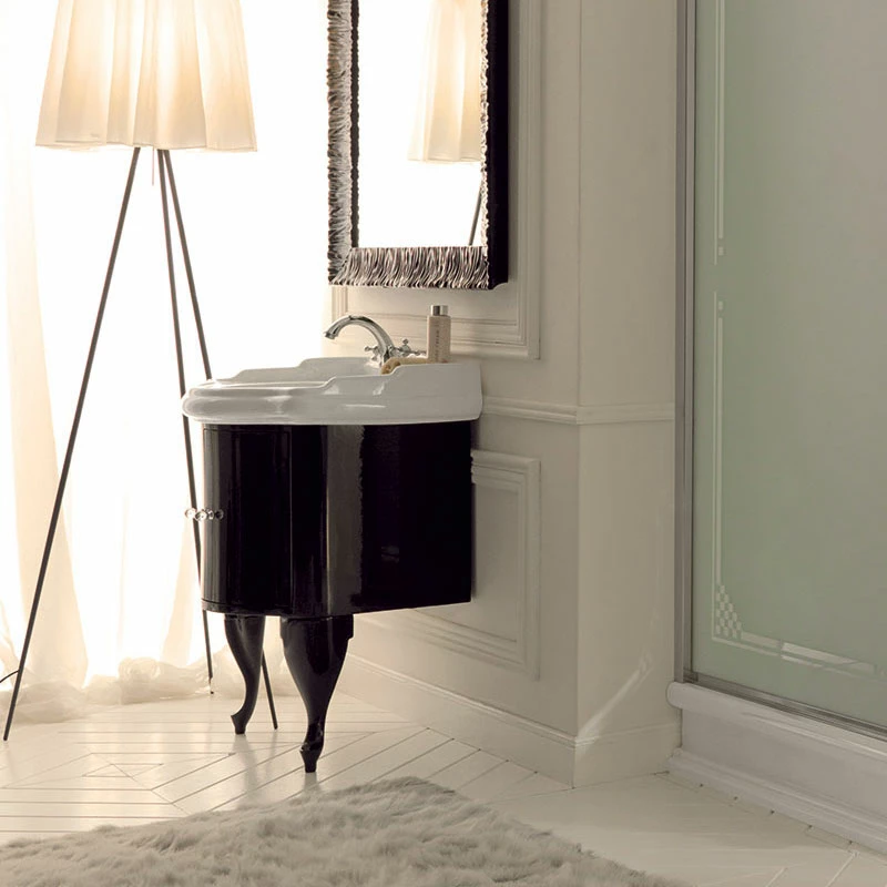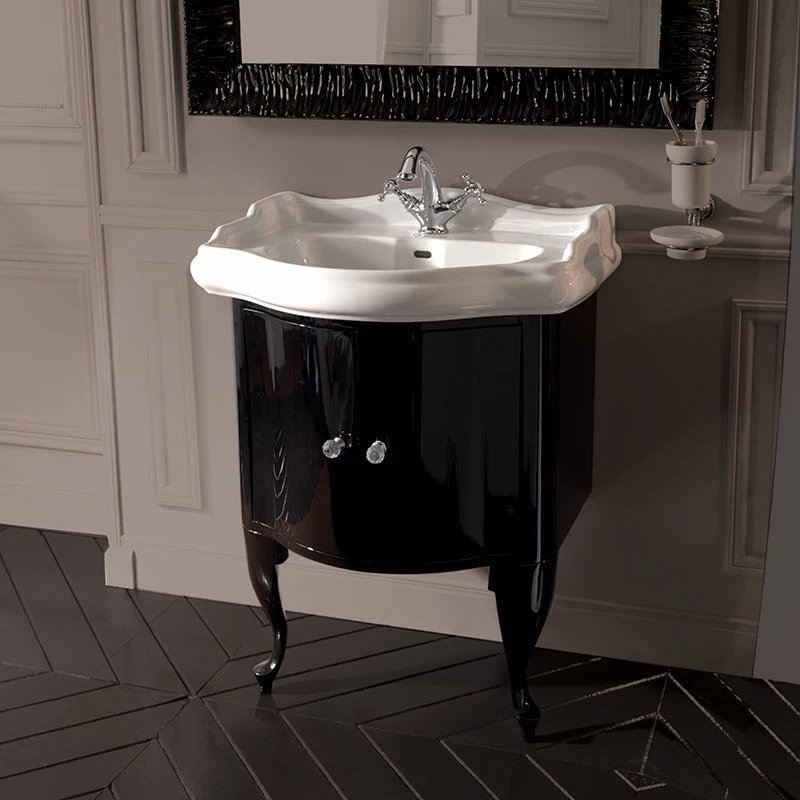 Retro 69cm Basin and Gloss Black 2 Door Cabinet