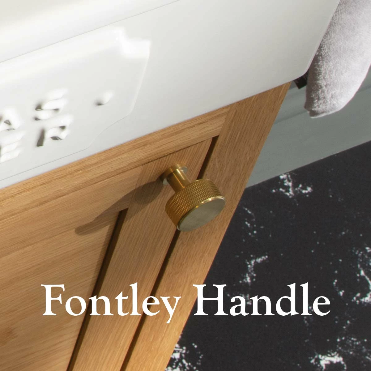 The vanity is available in Oak, Indigo Blue or Forest Green and is available with a choice of handle in 4 different finishes.